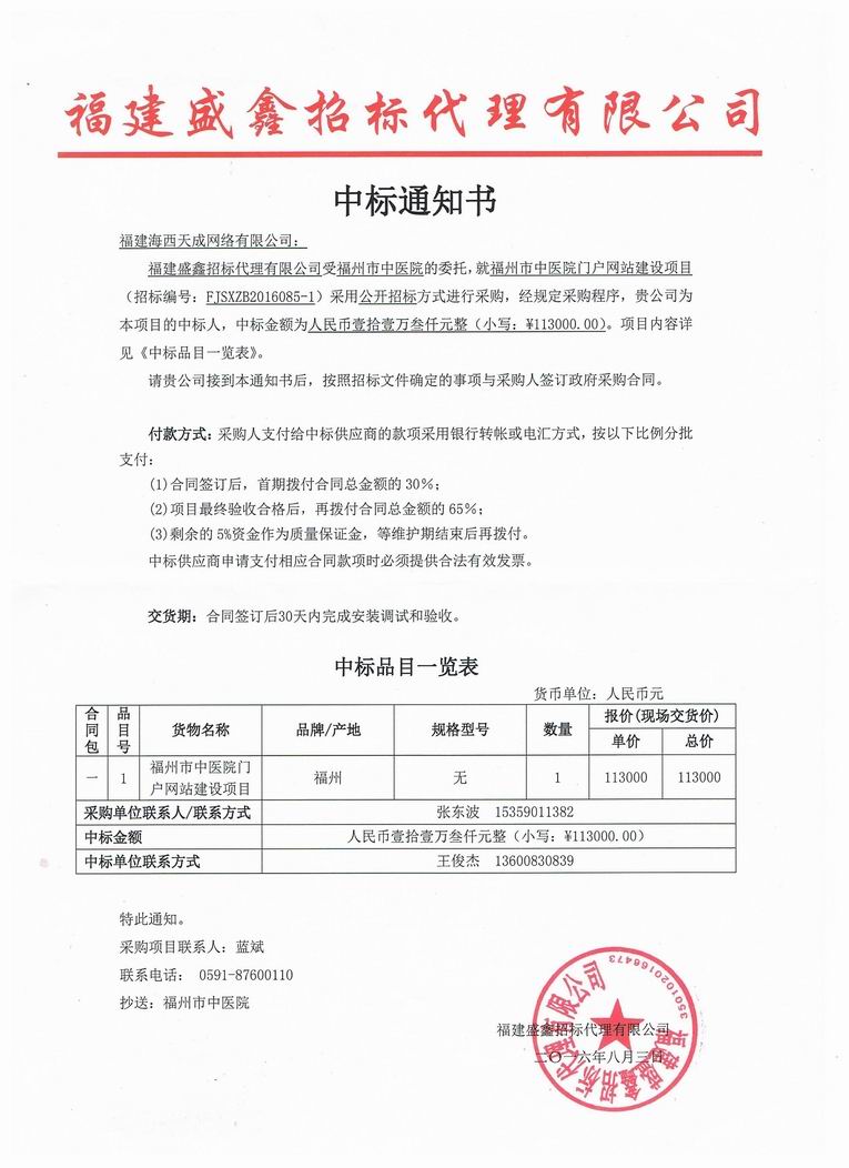 海(hǎi)西(xī)天成中标福州市(shì)中醫(yī)院門(mén)戶網站(zhàn)改版